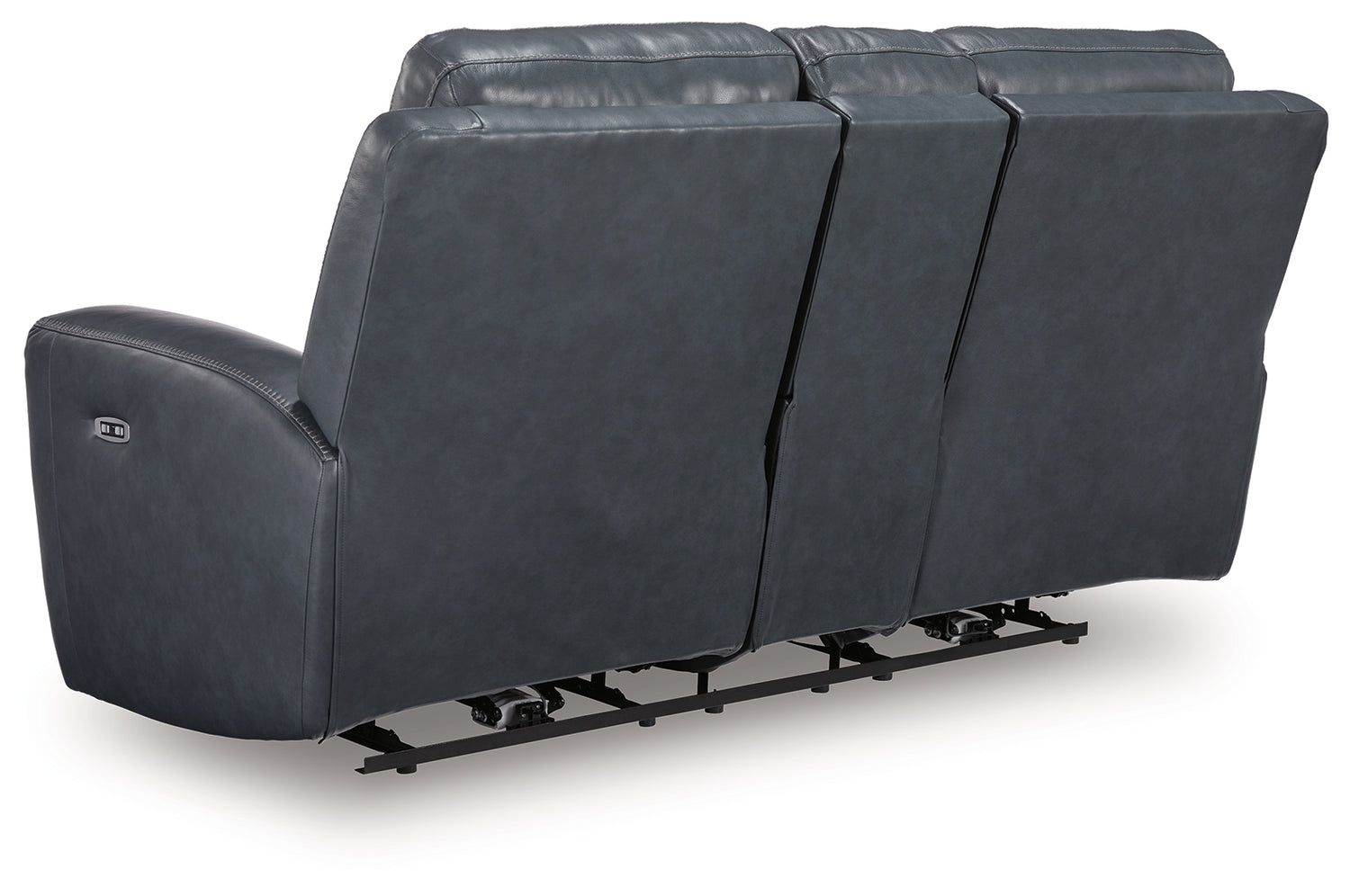 Prepare to be moved. This power reclining loveseat with console combines sleek modern design with all the soothing features you've been dreaming of. Wrapped in blue-hued leather and faux leather for affordable luxury, this highly contemporary piece with cozy scoop seating suits your relaxed vibe. Infinite reclining and headrest positions are yours at the touch of a button. It's the perfect choice for anyone who wants their comfort with a side of style.