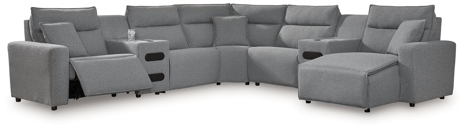 Furniture City Biloxi - Ashley Furniture - ModMax II Sectional - 7-Piece Power Reclining Sectional with Chaise / Salt and Pepper - 65906S7