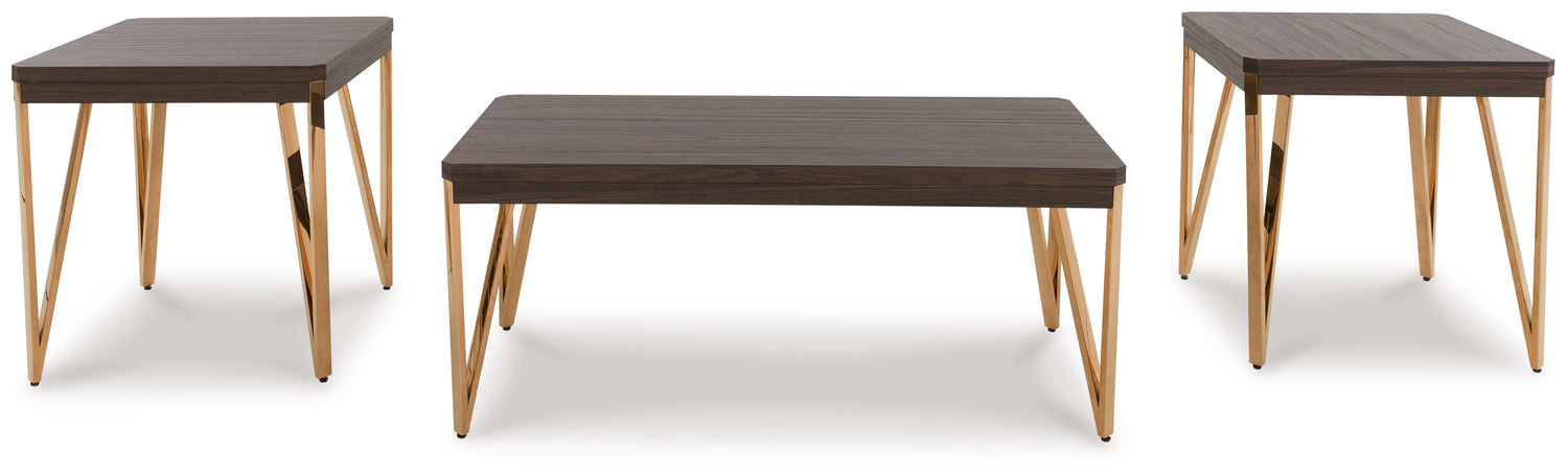 Bandyn Table (Set of 3) - Occasional Table Set (3/CN) / Brown/Champagne is backordered and will ship as soon as it is back in stock.